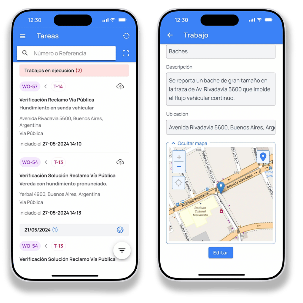 - Geolocalización: rastreo en vivo de la ejecución de tareas para garantizar el cumplimiento de estándares y rutas óptimas.